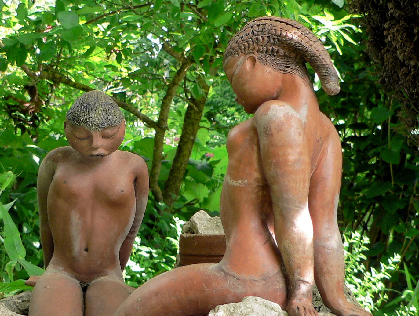 Above - semi-erotic 'wood sculptures' in terracotta